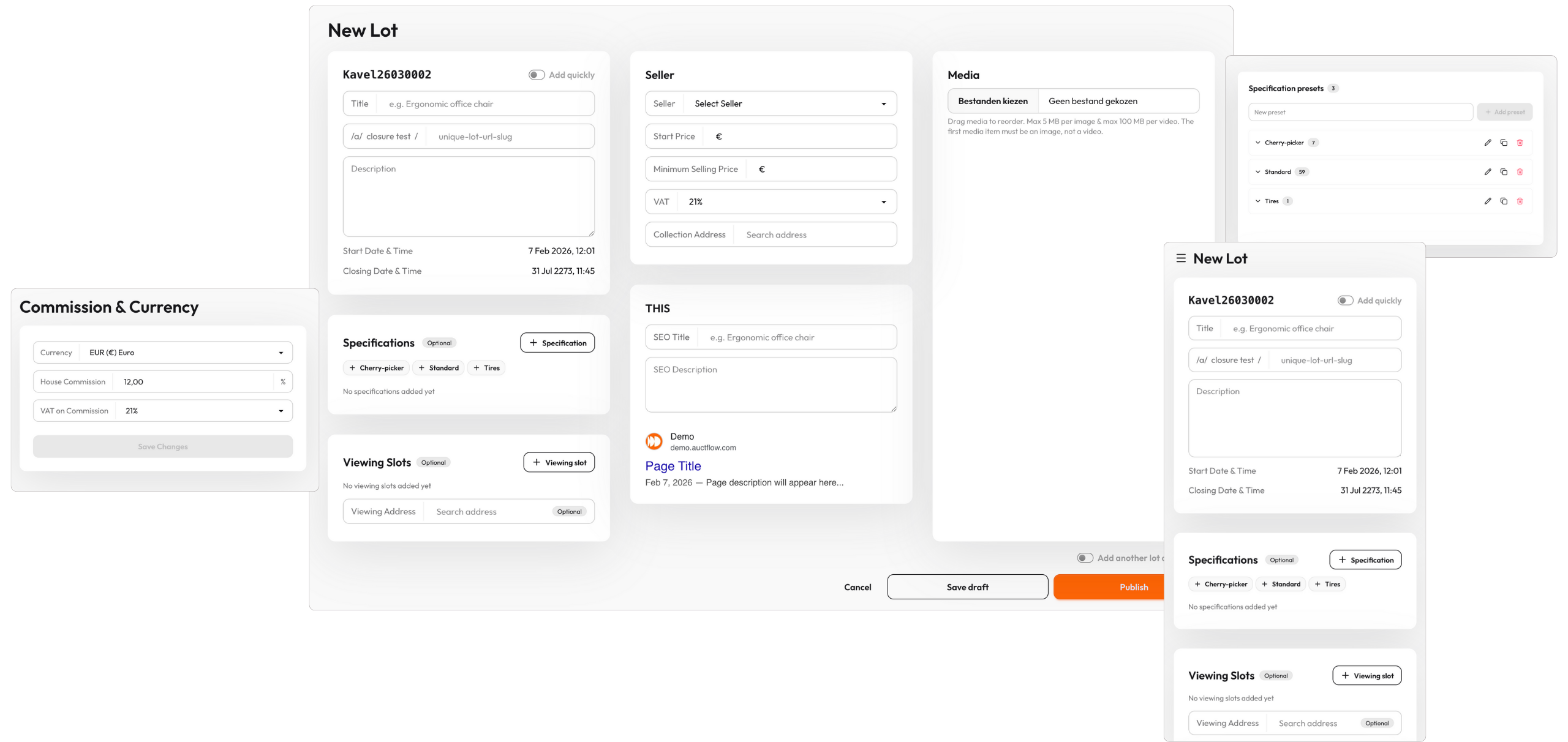 AuctFlow is designed to feel modern, calm and easy to use. Your team can navigate auctions, lots and bidders without training or complicated menus. Everything is where you expect it to be, with a layout that stays clear even when you manage large catalogs.